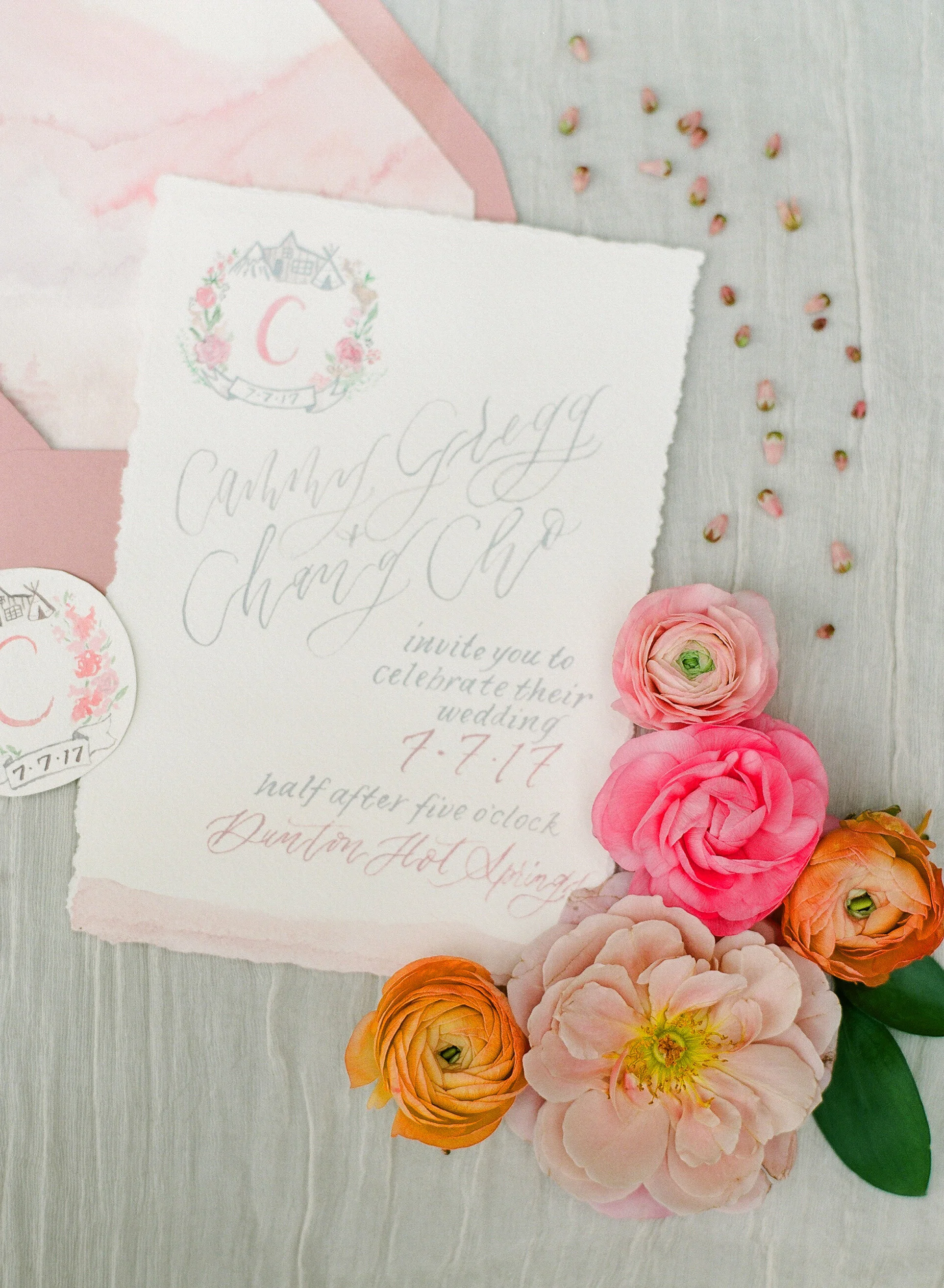 An all time favorite of mine, it looks like this incredibly elegant, high-end event was air-lifted and dropped into the middle of nowhere, Colorado. Shot by Sophie Epton (see a trend emerging? This woman loves a microwedding, too!) and executed to perfection with her team, including Remi + Gold on floral, Cammy and Chang were able to have a gorgeous celebration in a rustic, special setting. The ceremony site was backed with a view of the mountains and accented with an incredible floral installment, and the outdoor dinner party got details like agate place card and hand-calligraphed menus on deckle edge paper - a huge budget commitment for a large guest list, but totally attainable for their party of less than ten. For the rest of the gallery it’s available here, because yep, this one too was published on Style Me Pretty. Just proof that you can pack in all the same gorgeous moments worthy of publication on a much smaller budget!